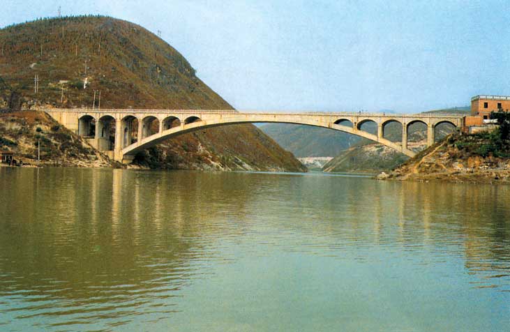 ?該橋是湖北省最大箱型板拱橋。全橋長(zhǎng)152.76米,于1984年建成。