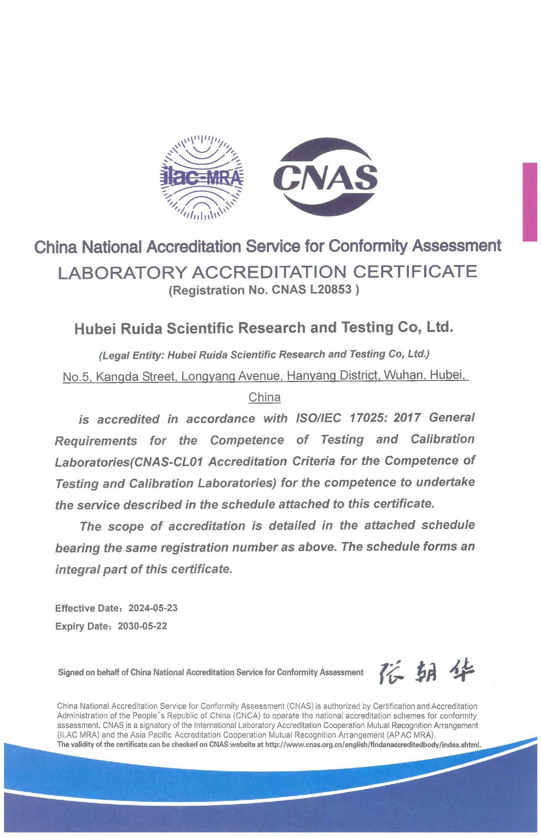 近日,湖北路橋瑞達(dá)檢測(cè)公司順利通過中國合格評(píng)定國家認(rèn)可委員會(huì)(CNAS)各級(jí)審核,取得“實(shí)驗(yàn)室認(rèn)可證書”,標(biāo)志著湖北路橋瑞達(dá)檢測(cè)公司首次躋身國家級(jí)認(rèn)可實(shí)驗(yàn)室行列,具備按照有關(guān)國際認(rèn)可準(zhǔn)則開展檢測(cè)服務(wù)的能力。