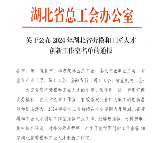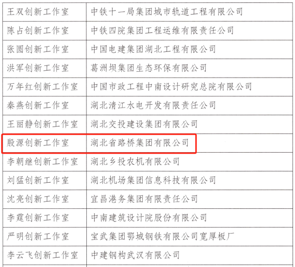 近日,湖北省總工會公布了2024年湖北省勞模和工匠人才創(chuàng)新工作室名單,湖北路橋“殷源創(chuàng)新工作室”光榮上榜。