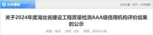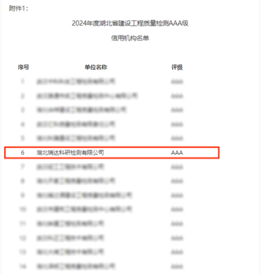 近日,湖北省建設(shè)工程質(zhì)量安全協(xié)會(huì)發(fā)布了2024年度湖北省建設(shè)工程質(zhì)量檢測(cè)AAA級(jí)信用機(jī)構(gòu)評(píng)價(jià)結(jié)果,瑞達(dá)科研檢測(cè)公司憑借優(yōu)異的誠(chéng)信建設(shè)和信用管理能力,榮獲最高級(jí)“AAA級(jí)”信用機(jī)構(gòu)評(píng)價(jià)。