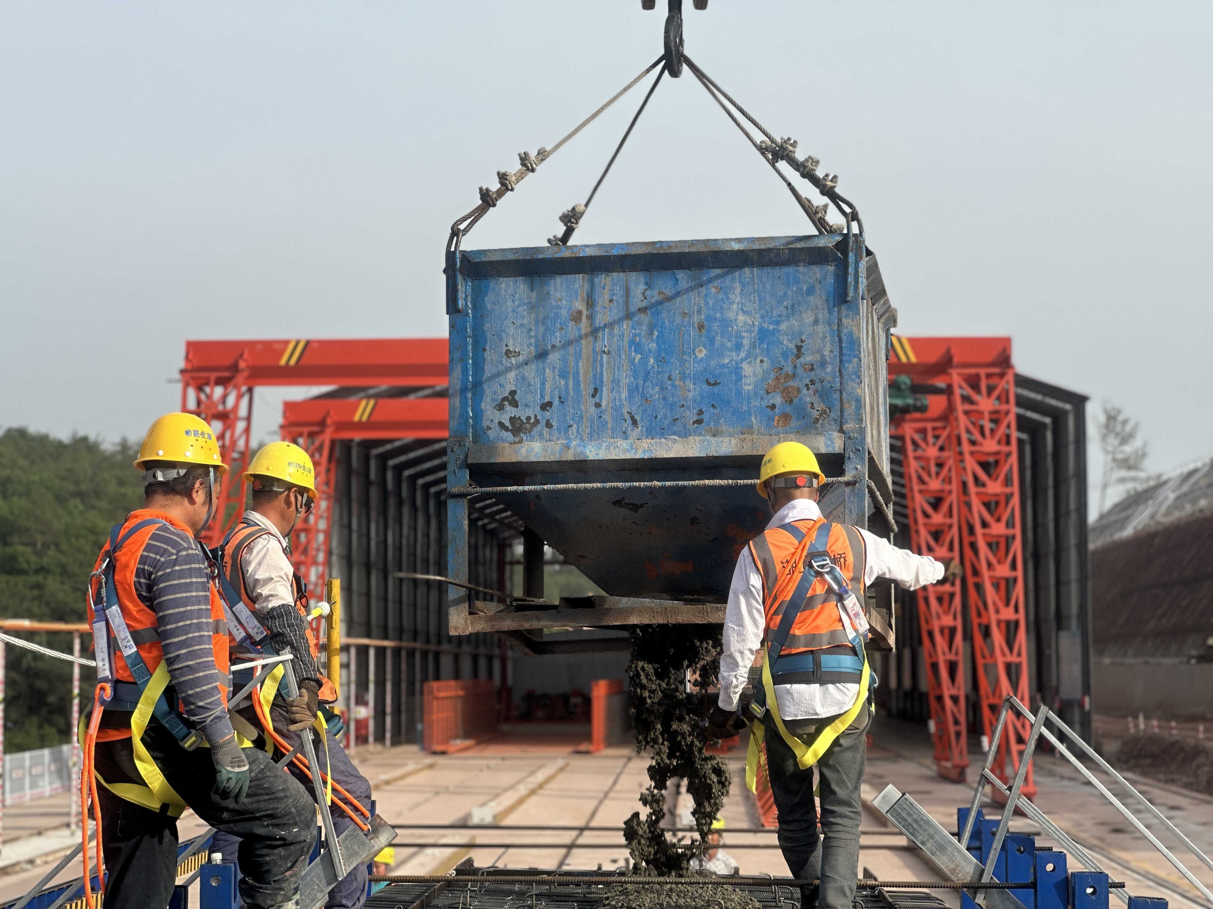 走進(jìn)項目預(yù)制梁場,工友們正有序準(zhǔn)備梁片預(yù)制材料。根據(jù)施工計劃,標(biāo)段全線共需預(yù)制1683片T梁。4月底,項目已完成駐馬溪大橋右幅首片T梁澆筑,拉開了項目橋梁上部結(jié)構(gòu)施工的序幕。
