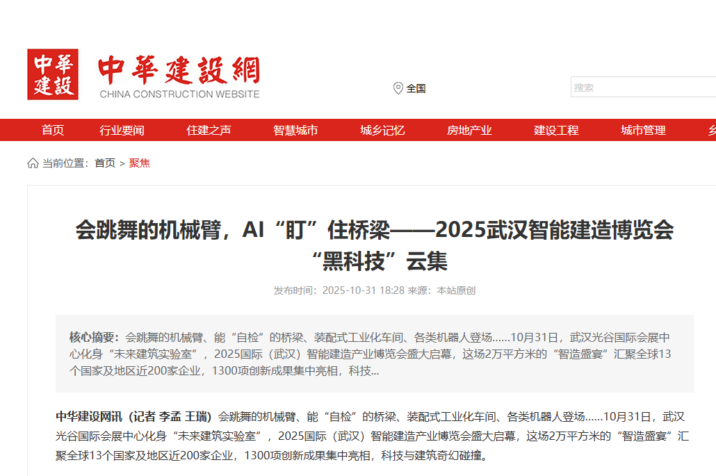 近日,2025國際(武漢)智能建造產(chǎn)業(yè)博覽會在武漢舉辦,聯(lián)投湖北路橋作為參展單位參加本次博覽會,中華建設(shè)網(wǎng)對聯(lián)投湖北路橋“黑科技”進行報道,以下是相關(guān)報道: