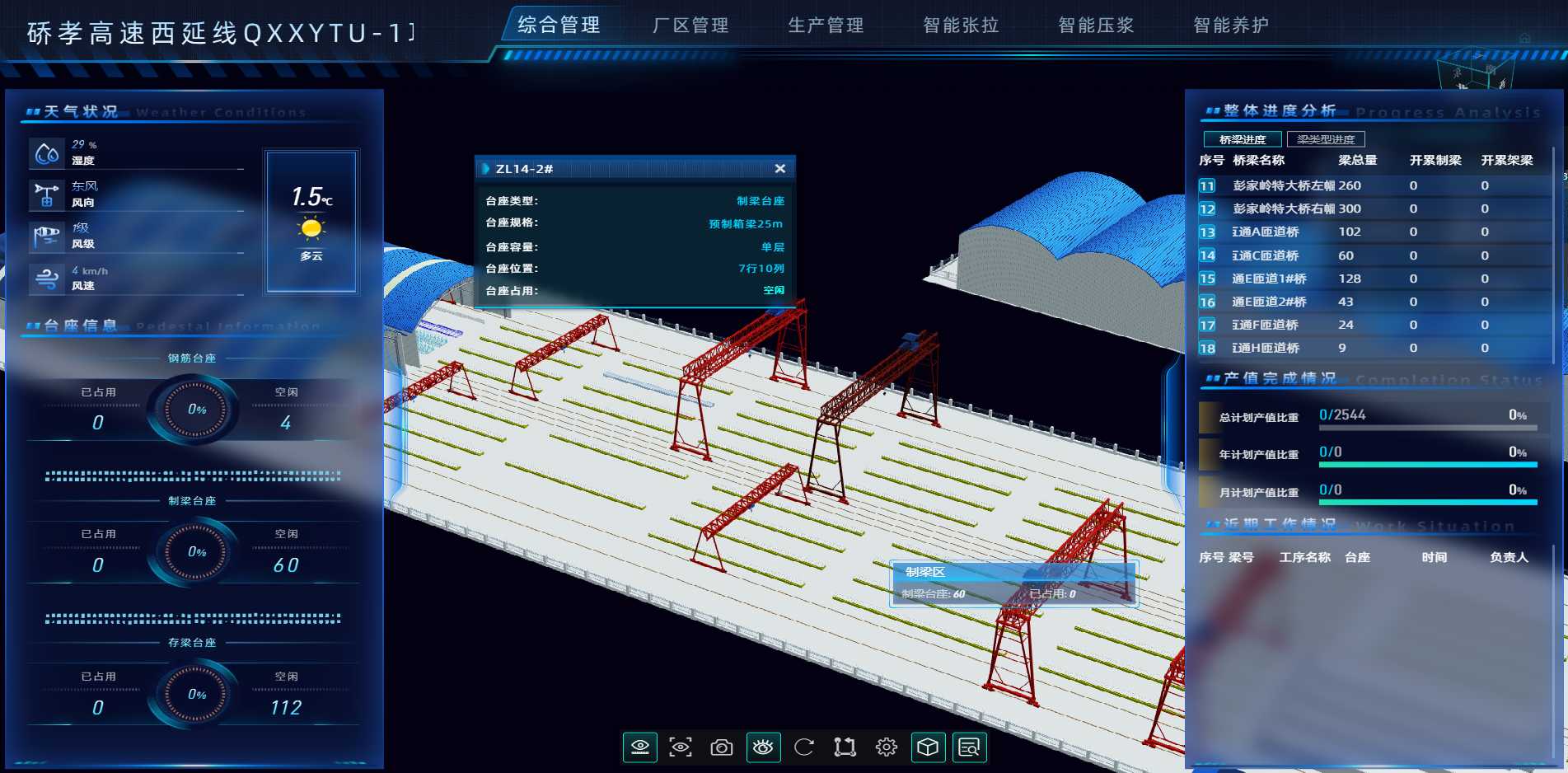 聯(lián)投湖北路橋硚孝西項目通過三大維度實現(xiàn)傳統(tǒng)基建革新:生產(chǎn)端以智能工裝、智慧拌合站構(gòu)建數(shù)字化生產(chǎn)體系,為構(gòu)件賦予全生命周期“數(shù)字基因”;現(xiàn)場端靠無人機巡檢、智能頂推系統(tǒng)等裝備,實現(xiàn)高危工序精準管控與“無人化”作業(yè);管理端搭建一體化協(xié)同平臺,打通BIM模型與物聯(lián)網(wǎng)數(shù)據(jù),形成數(shù)字孿生與在線協(xié)同閉環(huán)。