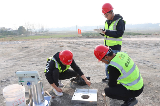 施工工藝上,團(tuán)隊(duì)創(chuàng)新形成“清表碾壓-黏性土下封層-復(fù)合土工布鋪設(shè)-改性磷石膏分層填筑-精準(zhǔn)碾壓-養(yǎng)生封層”完整流程,采用土工格柵加筋技術(shù)解決磷石膏與原路基土銜接易沉降問(wèn)題,建立嚴(yán)格工序銜接機(jī)制與環(huán)保監(jiān)測(cè)方案,配套臨時(shí)排水系統(tǒng),確保施工全過(guò)程綠色可控。試驗(yàn)檢測(cè)中,團(tuán)隊(duì)依托灌砂法、擊實(shí)試驗(yàn)等多類檢測(cè)手段,結(jié)合智能離子遷移傳感器、地下水環(huán)境監(jiān)測(cè)井等設(shè)備,實(shí)現(xiàn)路用性能與環(huán)保指標(biāo)雙達(dá)標(biāo),改性磷石膏浸出液pH值穩(wěn)定在6~9之間,特征污染物濃度符合國(guó)家排放標(biāo)準(zhǔn)。
